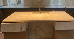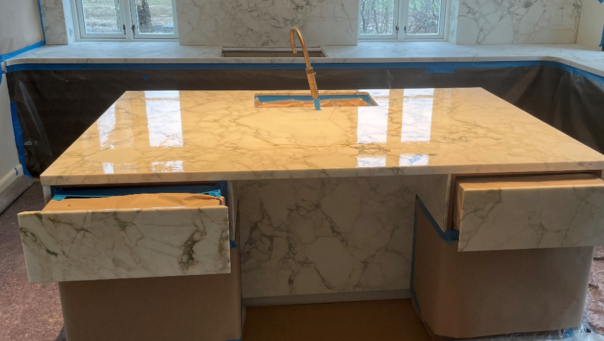 3.メンテナンス アシッド プロテクト Acid Protect 特徴 プロ仕様の屋内専用UV硬化型コーティング剤 大理石、石灰岩、その他の酸に弱い表面(キッチンの作業台、ダイニングテーブル、洗面器など)の保護コーティングに使用。 機械的な損傷や一般的な家庭用のシミ(例:酢、クエン酸、赤ワイン、コーヒー、コーラ、食用油など)、さらに酸性クリーナーからも防ぎます。 仕上げはマットから高光沢まで調整可能です。処理後、わずかな傷は磨き直すことで補修可能です。水平および垂直面(例:テーブルの端、洗面台の前面)への適用が可能です。 最先端UV-硬化コーティング材 大理石、ライムストーンや酸に弱い石材でできたキッチンカウンタートップ、ダイニングテーブルなどにお勧め 耐酸性と耐傷性に優れる 効果の持続性が高い UVコーティングの特性 非常に高い耐久性 優れた対薬性・耐水性 美しい高光沢 高い安全性(硬化後は無溶剤) 仕様 容量:900 ml 使用方法 手順1 <<施工面の粗面化>> 穴・傷がある場合には、ACID PROTECTで補修する ♯220のサンドペーパーをオービタルサンダーで研磨 研磨後、表面に穴・傷がないか確認する 表面をきれいにする 手順2 <<ACID PROTECTの塗布>> 塗布する面をきれいにし、水分が無いように完全に乾燥させる 200g~250g/㎡を基準に必要量を正しく準備する 櫛目コテA2型で伸ばす 端の部分など繊細なところは高品質ナイロンブラシにて仕上げも可 <注意事項> ごみの浮遊の無いきれいな場所で施工する 15度以下の場所では施工しないでください ACID PROTECTと石を温めた方がきれいにレベリングできます 手順3 <<レベリング(平滑化)>> 気泡が無いか確認 気泡がある場合は硬化前に空気を抜く 約30分動かさず平滑化させる <注意事項> 埃の舞わない場所で行う レベリング時は動かさない 手順4 <<UV照射乾燥>> 表面のムラの発生を防ぐため、まず10~15cmの予備硬化を行う 3~5cmの本硬化を行う(通常1~5分/㎡) <注意事項> 爪でひっかいても傷が付かないほどに硬化させてください 黒系の大理石は通常よりも硬化時間を必要とします 強い着色汚れ(赤ワイン等)が予想される場所には、翌日に直射日光の下で最低でも2~4時間、あるいは最大1日の硬化促進を推奨します UV照射時には専用の保護メガネを着用ください 手順5 <<ブツ取り>> 小型のサンダーを使用しP3000で研磨しブツを除去してください ブツが取り切れない場合は、P600から始めてください <注意事項> 押し付けて研磨するとコートが薄くなります ブツが多く研磨で表面を傷つけた場合は、再度♯220から研削しやり直してください 手順6 <<研 磨>> P800 ~ P1500 乾式 P2000 ~ P4000 湿式 <注意事項> オービタルサンダーで押し付けることなく軽く研磨してください 水はスプレー等で軽く吹きかけ、順次追加してください 表面の状況により研磨工程は増減させてください 手順7 <<バ フ>> AKEMI 1S Abrasive Cut を使用しフエルトバフで研磨 AKEMI 1S Super Fine Polishを使用しラムウールバフで研磨 <注意事項> 必ず指定のコンパウンドを使用してください 研磨時間は約3分/㎡です ※ マスク・手袋などの必要な保護具を着用の上安全対策を必ず行って下さい。 ※ 使用前には必ず事前テストを行い、仕上がり状況を確認してください。 ※ 詳細は、技術指導書をお読みください。 施工例 BEFORE AFTER
